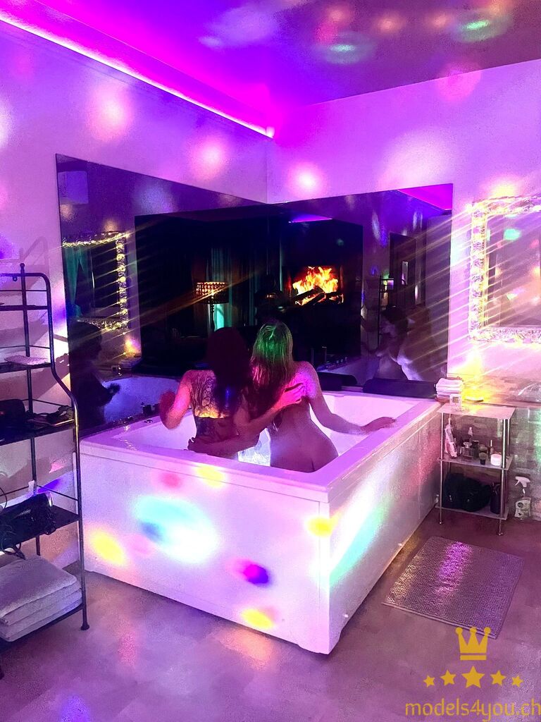 Zwei unwiderstehliche Schönheiten erwarten Dich in einem dampfenden Whirlpool und sind bereit, Dich in ihre verspielte, verführerische Atmosphäre zu entführen. Lasse Dich von ihrem Charme, ihren Berührungen und ihrer koketten Energie umgeben, während Du intime Momente, warme Blasen und eine köstlich sinnliche Entspannung geniesst.